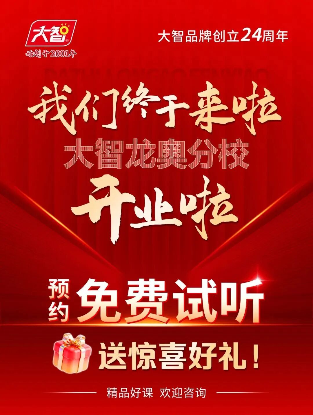 尊敬的家长朋友: 您好! 衷心感谢您长期以来对大智的支持与信任!为持续优化教学环境、提升服务质量,大智开元分校已正式迁至济南市龙奥西路1...