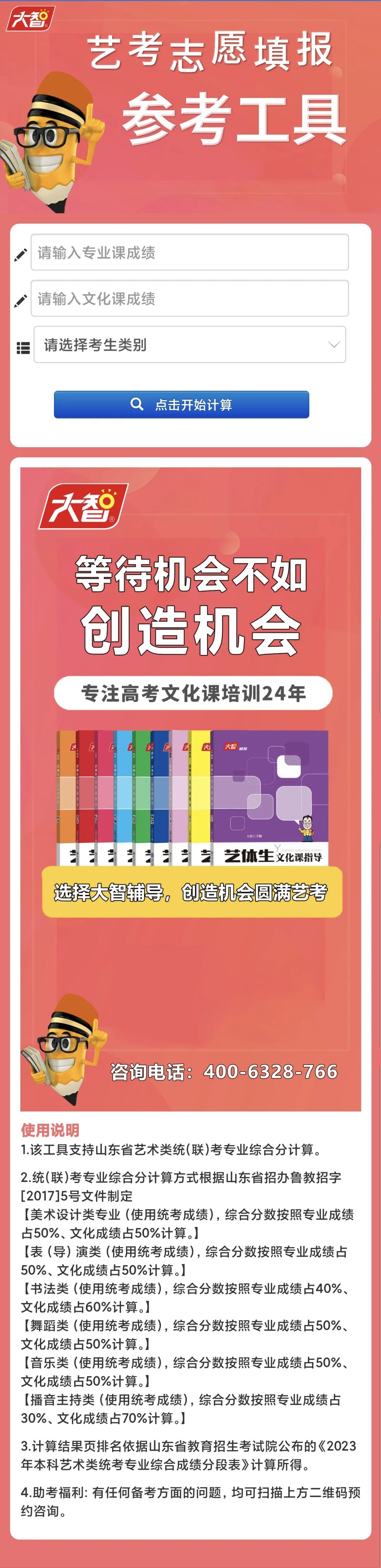 1.音乐类、舞蹈类、表(导)演类、美术与设计类、书法类:综合成绩=高考总分×50%+专业省级统考成绩×2.5×50%