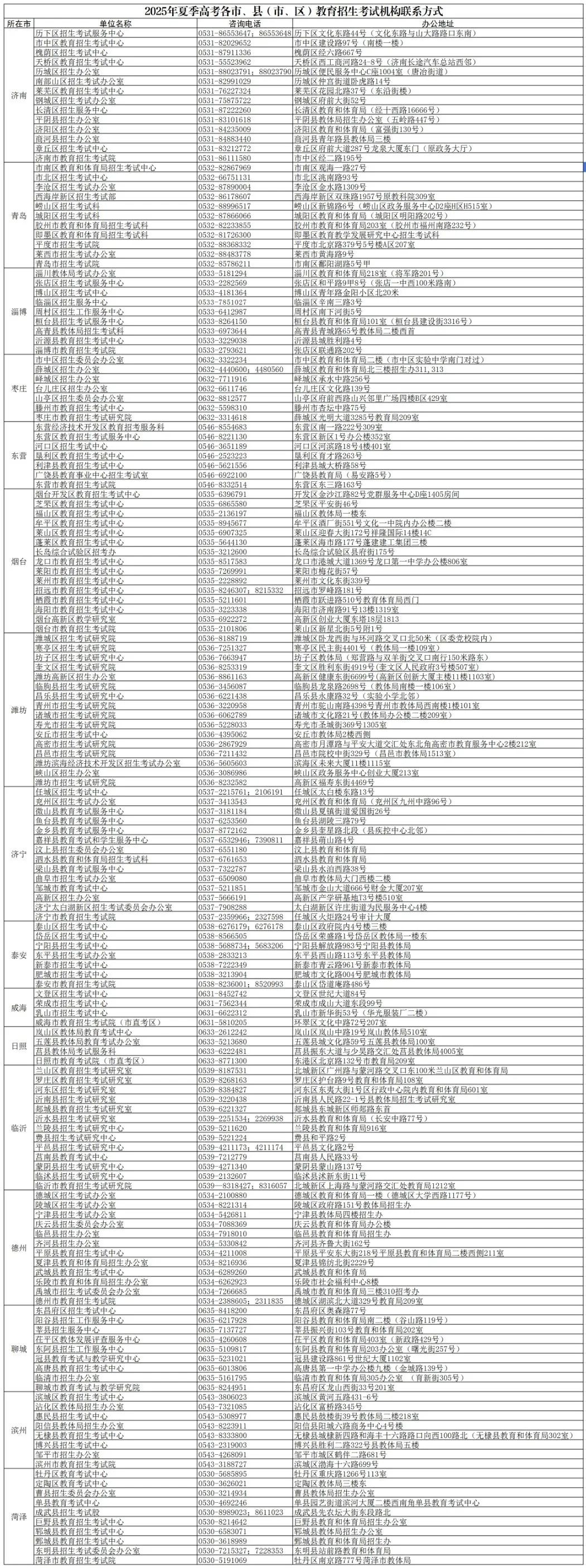 16.各地招生教育考试机构联系方式