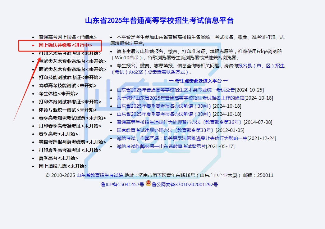 2025高考报名缴费工作11月12日至16日(每天9:00-18:00)进行。提醒还未缴纳高考报名费的考生,及时登录山东省教育招生考试院官网(http://wsbm.sdzk.cn)完成缴费工作。