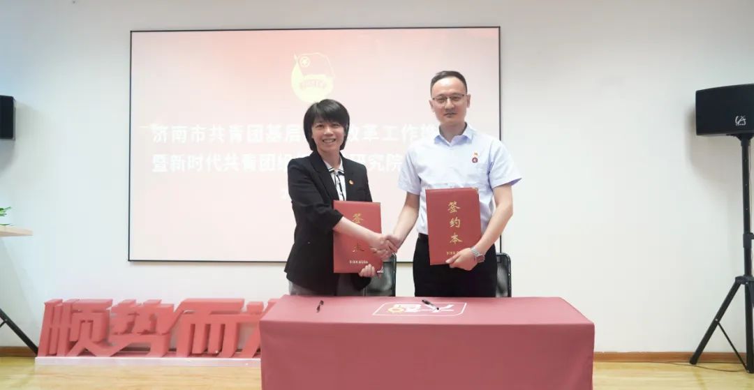历下区团委书记罗茜与研究院院长昌举冈共同签订《合作协议》。