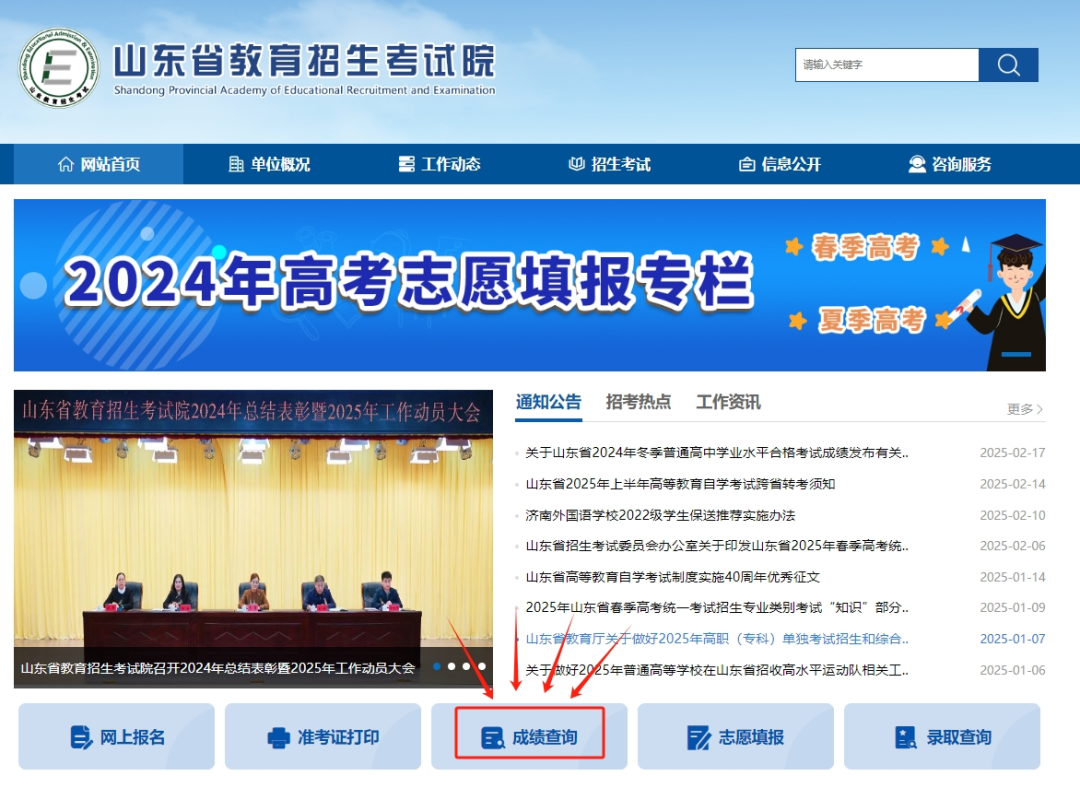 考生也可登录山东省教育招生考试院成绩查询系统(https://cx.sdzk.cn),在规定时间内查询当次考试成绩。