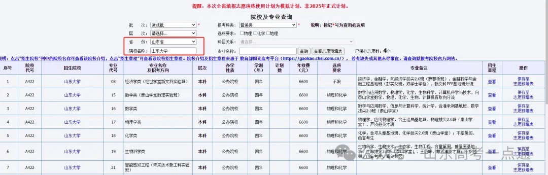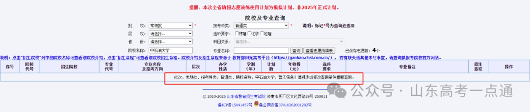 提醒考生,本次模拟志愿填的计划报均为本科计划,非2025年正式计划,因此,没有专科计划。