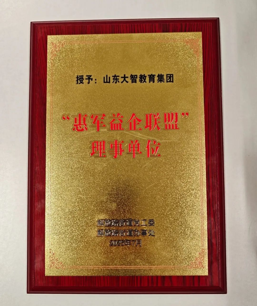 现场,大智被授予“惠军益企联盟”理事单位。