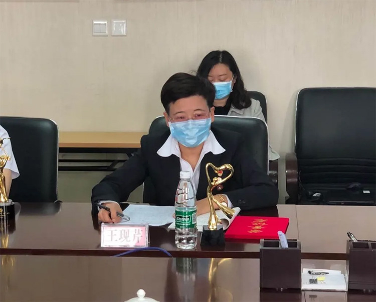 05月13日,济南市历下区庆祝国际家庭日暨最美战“疫”巾帼典型“送奖到家、送奖到岗”座谈会在历下区人民医院召开。历下区委副书记尹红梅,历下区妇联党组书记、主席李健及获奖代表参会。会上,尹红梅为大智控股集团党委书记、妇联主席王现芹颁发了市区两级“最美战‘疫’妇联人”荣誉奖杯和证书。